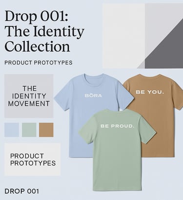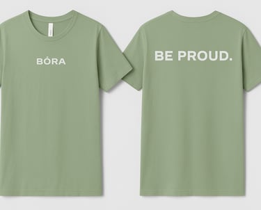 For Drop 001, I developed a detailed production specification system for all three BÓRA T-shirts. These specs standardize typography, spacing, alignment, color usage, and print guidelines to ensure consistency across all garments. The visual system supports the brand’s messaging: Be Bold. Be Proud. Be You., while maintaining professional print quality and scalability for manufacturing.